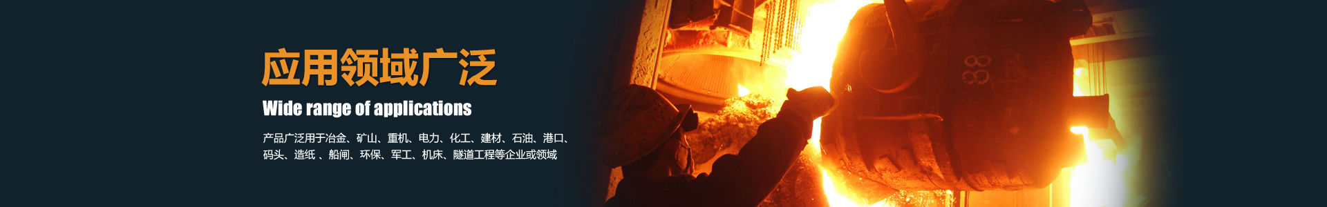 公司產品廣泛用于冶金、礦山、重機、電力、化工、建材、石油、港口、碼頭、造紙 、船閘、環保、軍工、機床、隧道工程等企業或領域。廣受各行各業客戶好評